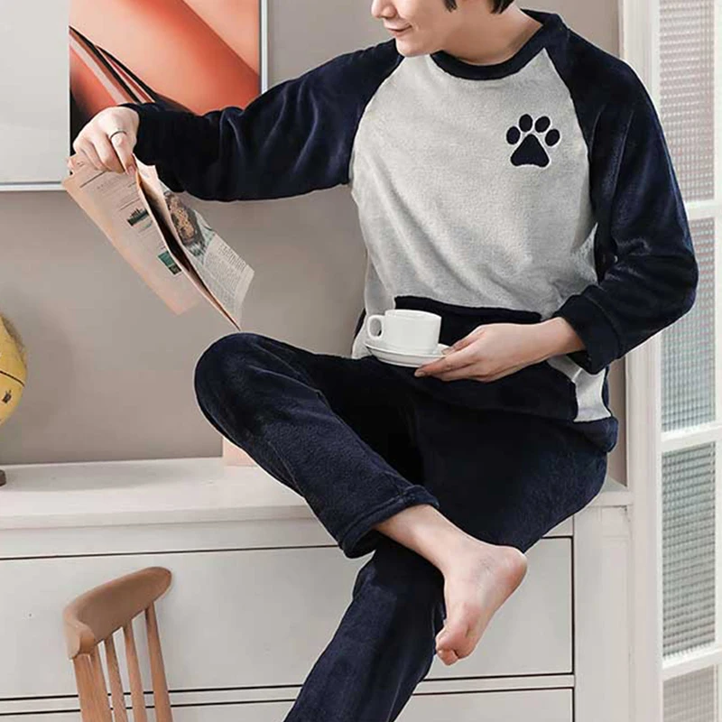 Мужские Фланелевые теплые пижамные комплекты, одежда для сна, толст...