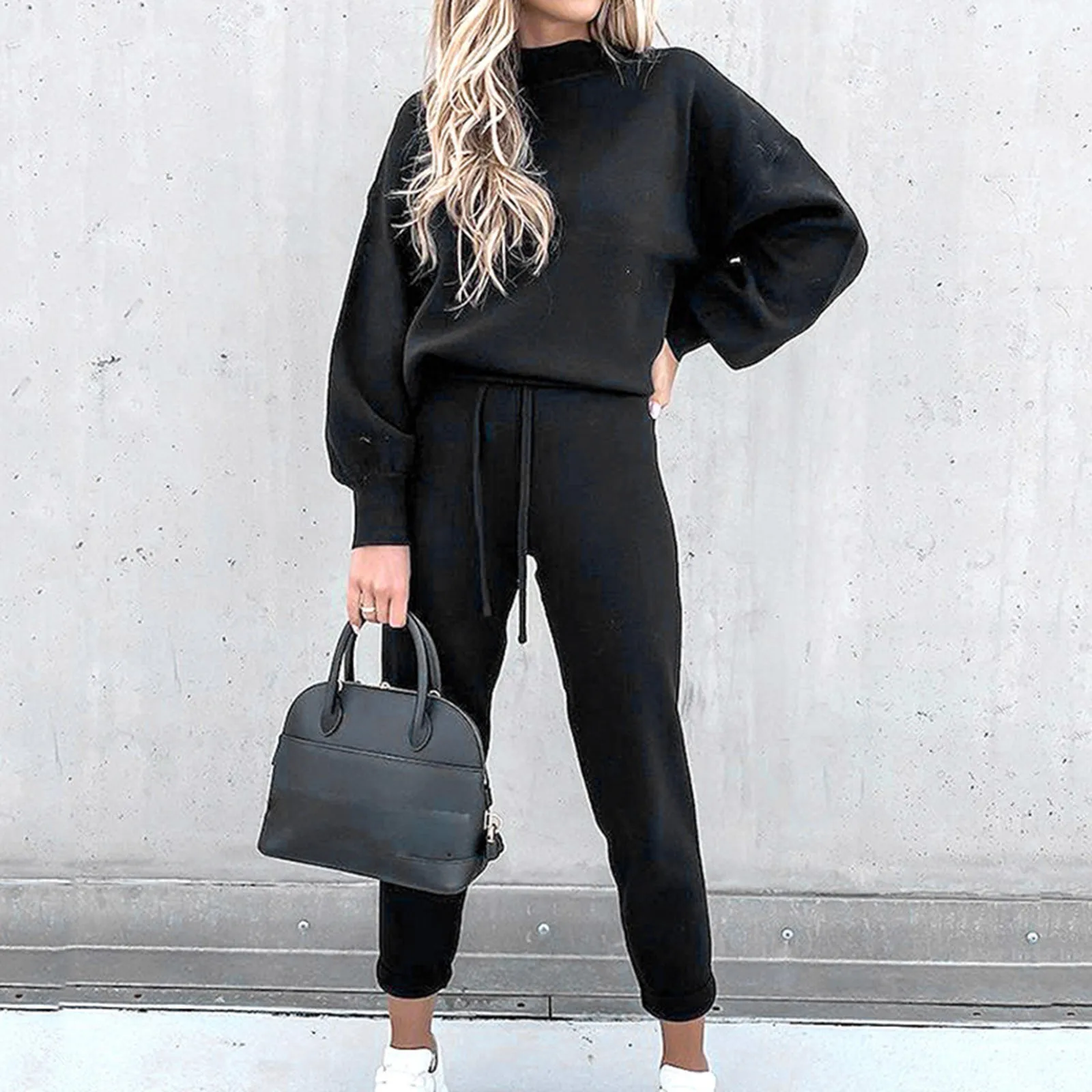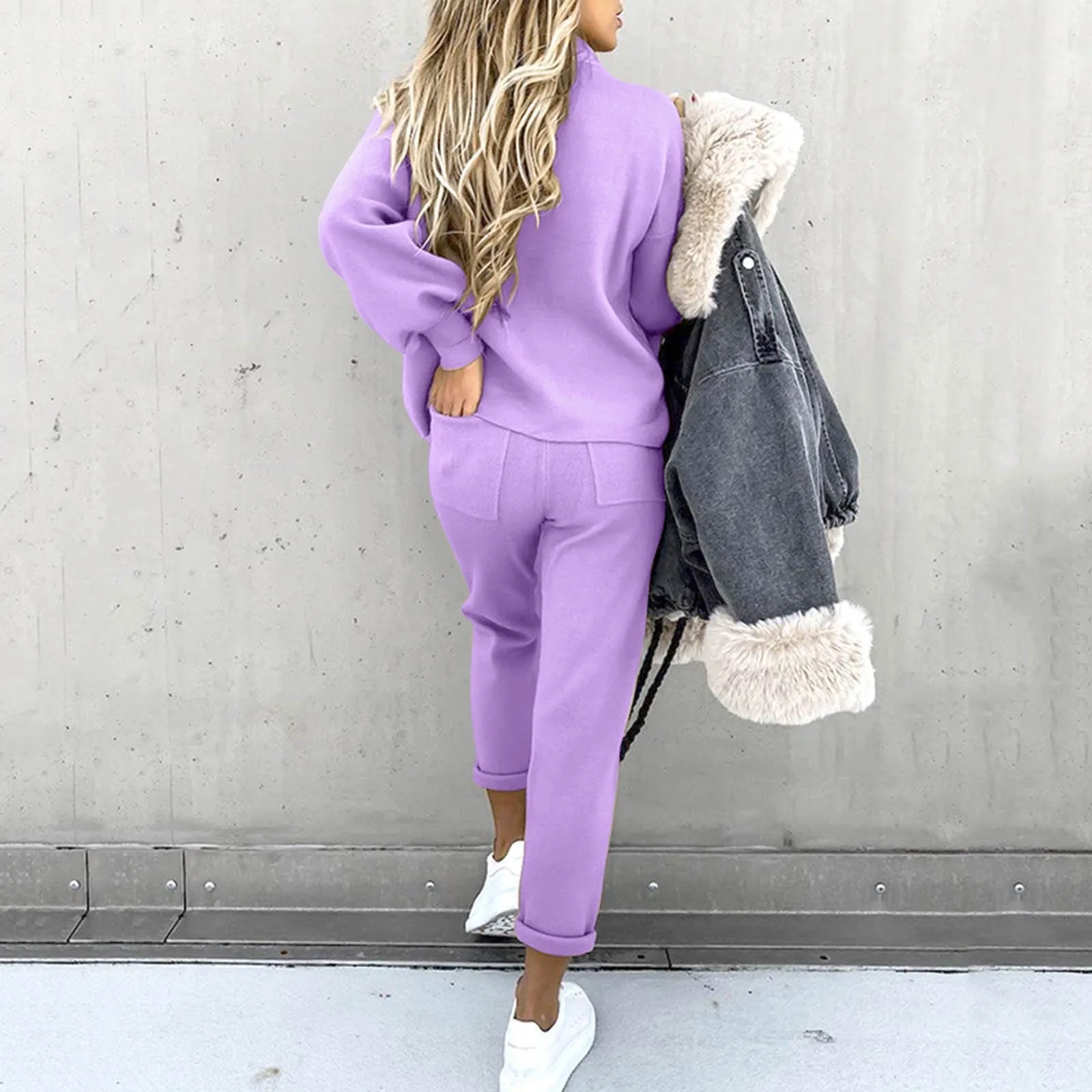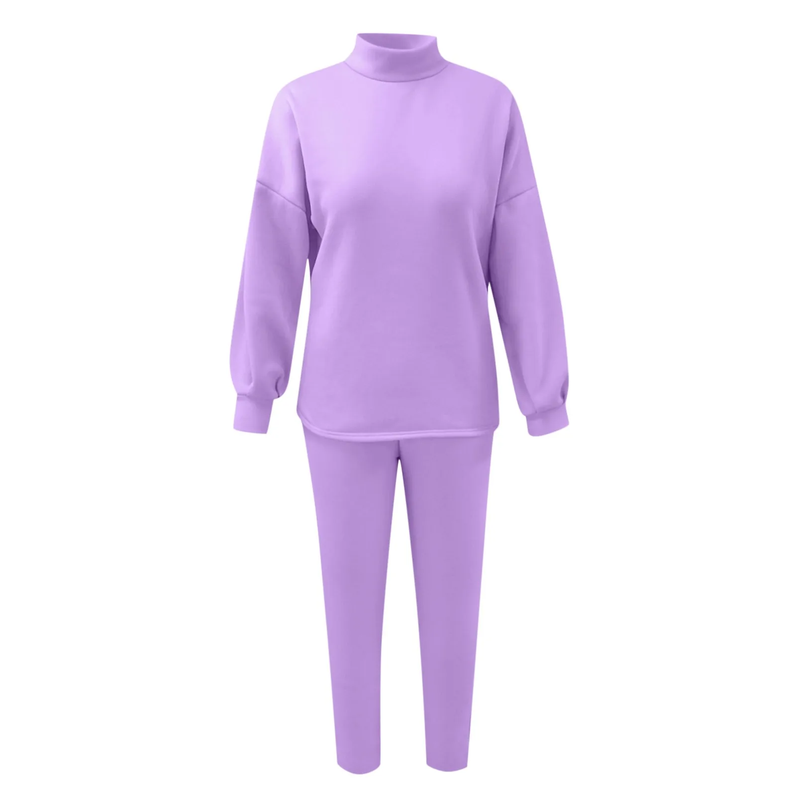Костюм спортивный женский однотонный из 2 предметов, Свитшот и брюки, блузка с длинным рукавом и О-образным вырезом, зимняя одежда, осень-зима