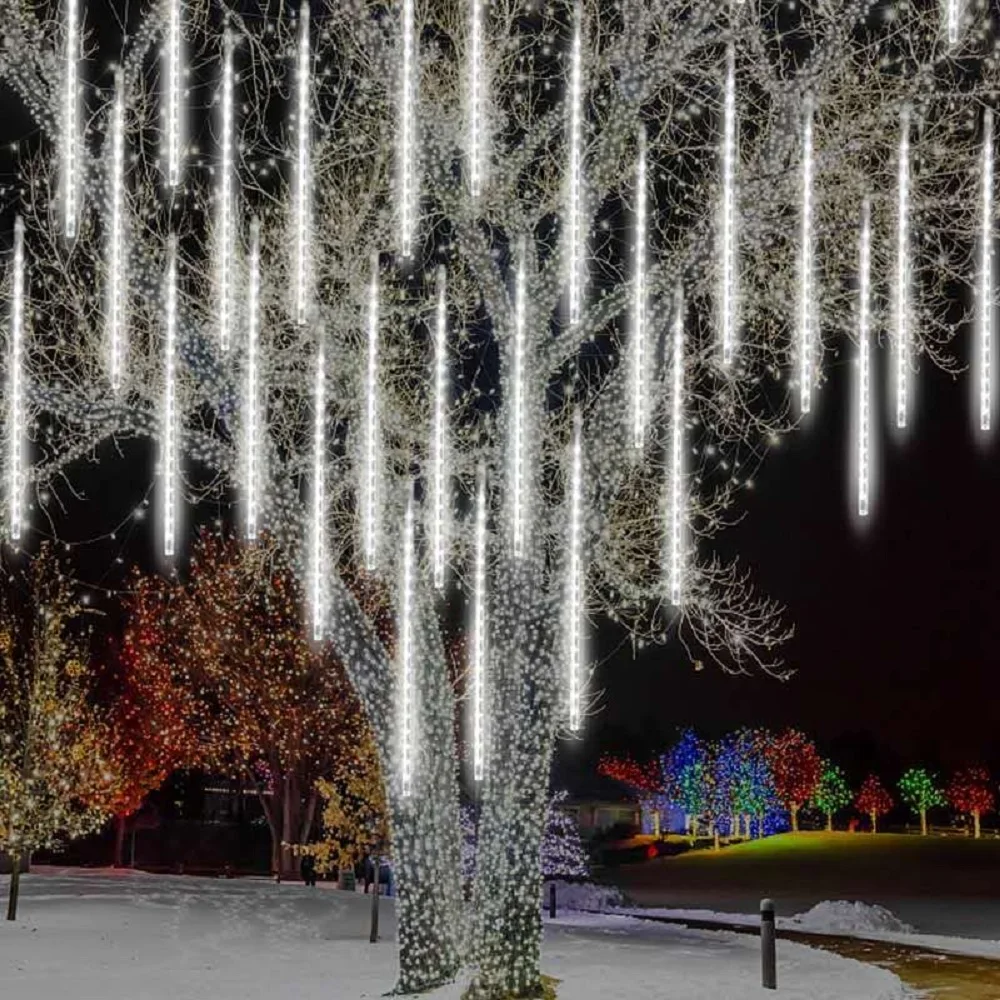 30 50 см 8 трубок, водонепроницаемый метеоритный дождь, светодиодные гирлянды, наружное Рождественское украшение для домашнего дерева, штепсельная вилка EU/US/UK/AU