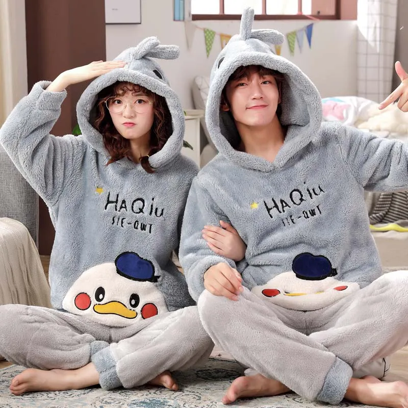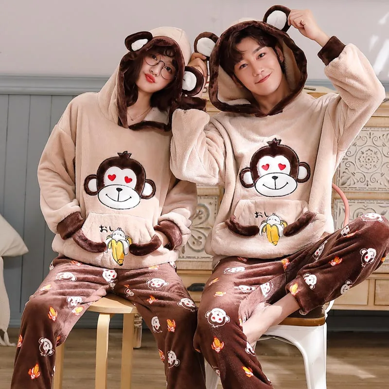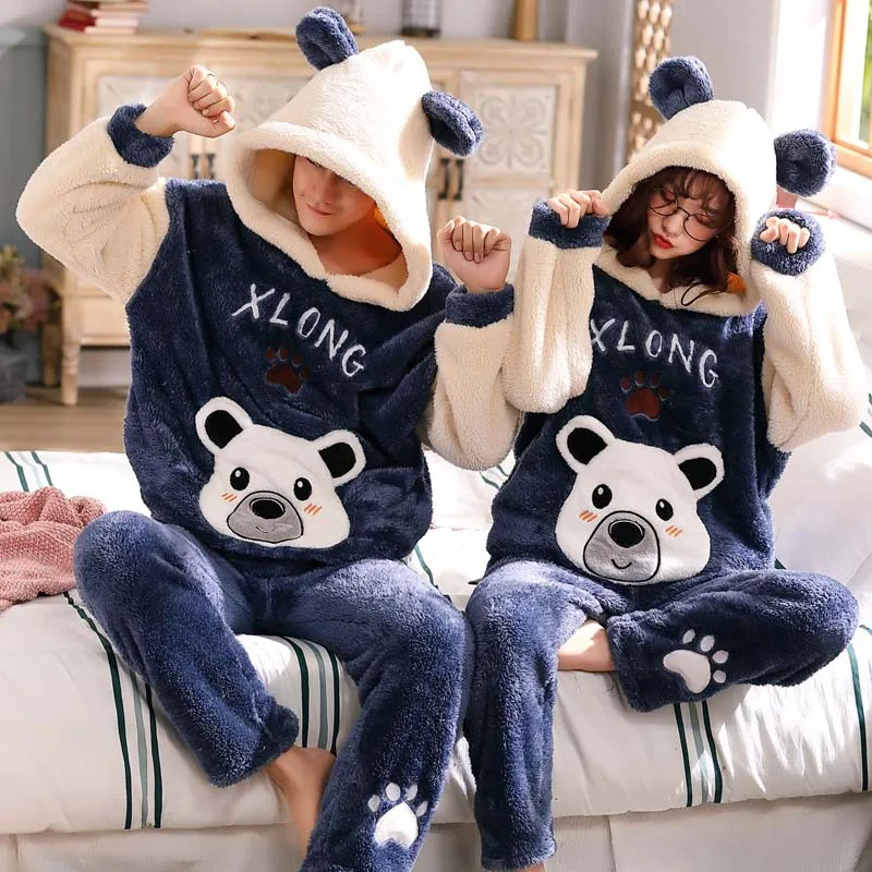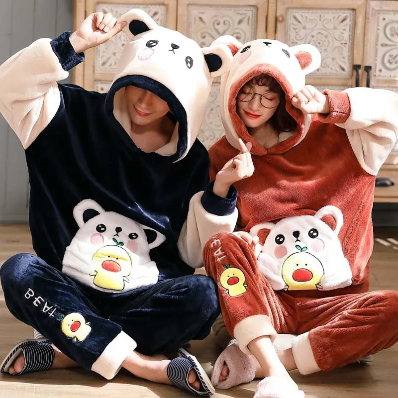 Пижама для взрослых и Пар Унисекс, женская зимняя бархатная одежда ...