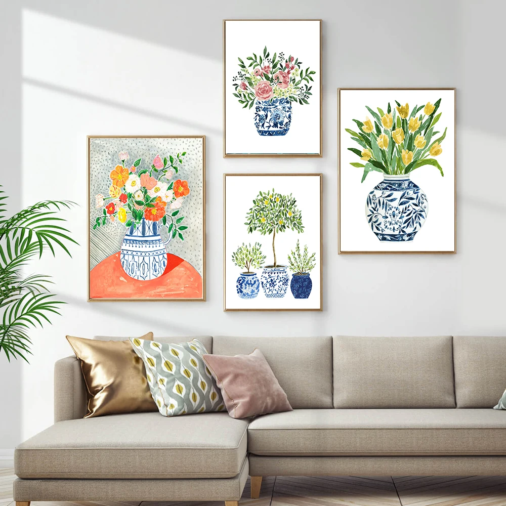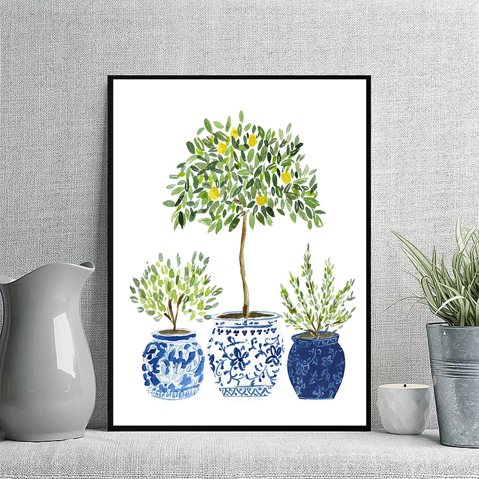 Лимон дерево Акварель Цветы стена искусство Китайский стиль ваза плакат и печать ретро растения цветы холст Картина Декор для дома