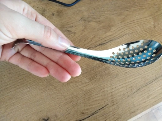 Крутая маленькая ложка cedzakowa, хорошо подходит для небольших вещей wylawiana с маленькой кухонной утварью :) доставка ниже месяца. Рекомендуем :)