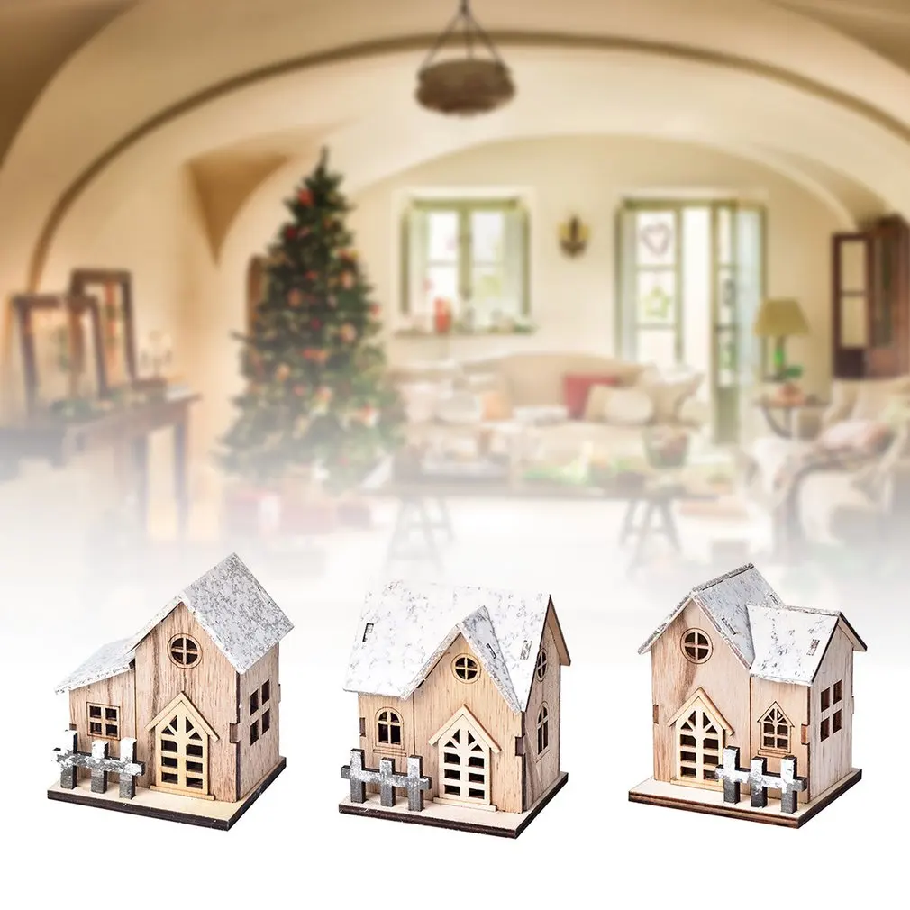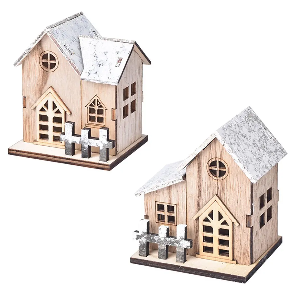 Рождественская деревянная светодиодная подсветка, светящийся маленький дом ручной работы, рождественские настольные украшения, украшение для дома
