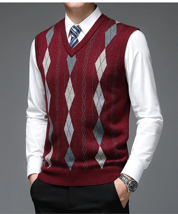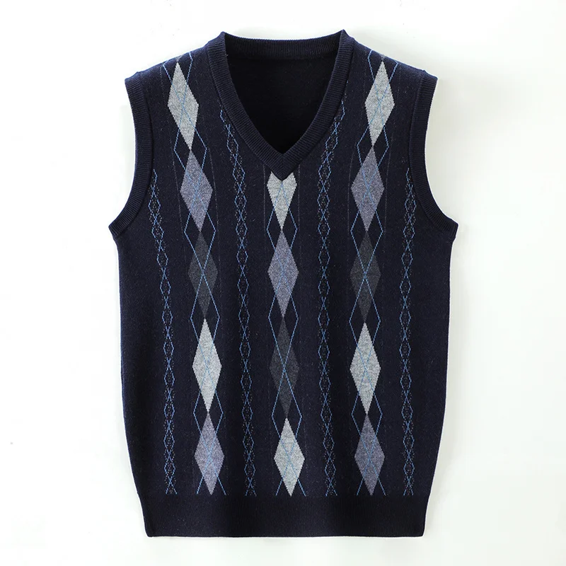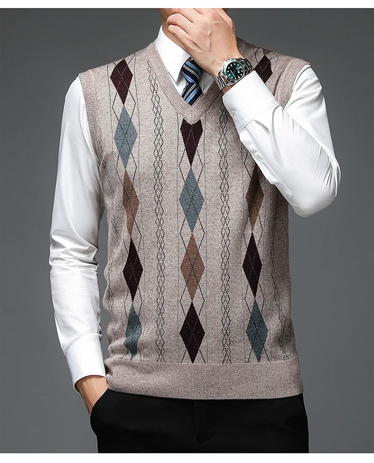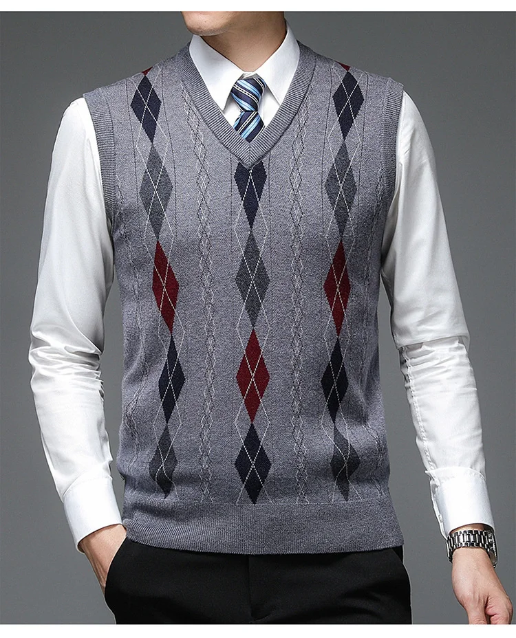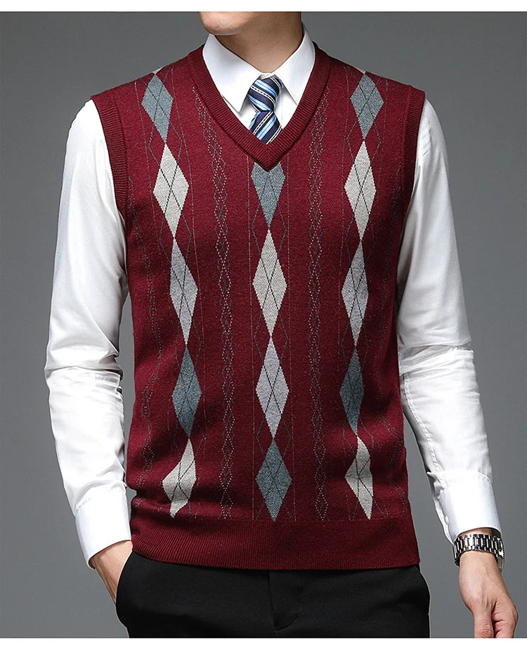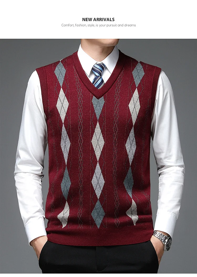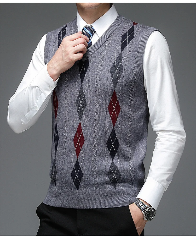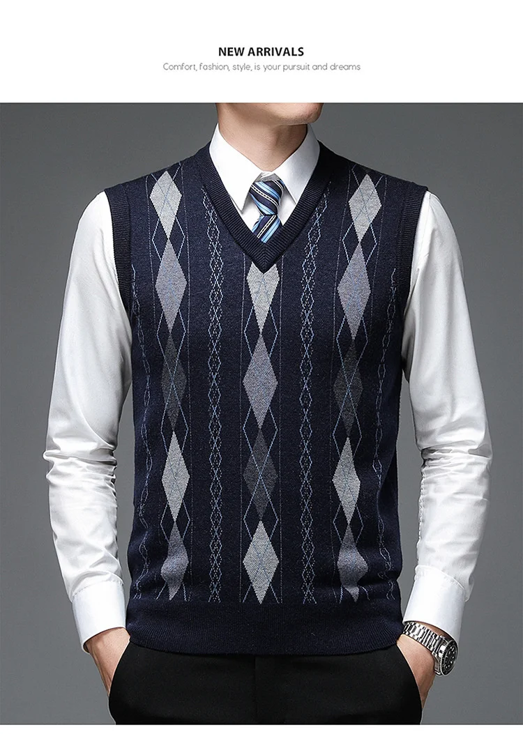 Пуловер мужской с V-образным вырезом, 6% шерсть, без рукавов