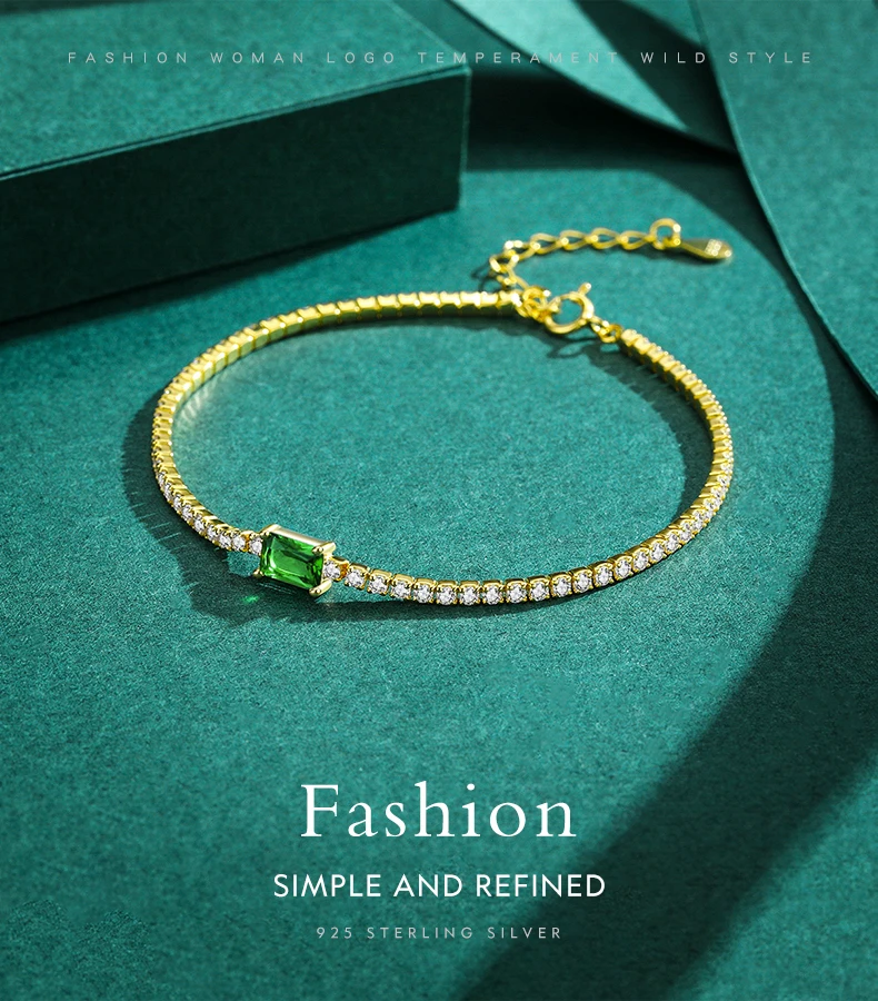 Женский браслет из серебра 2021 пробы с фианитами золотистого цвета