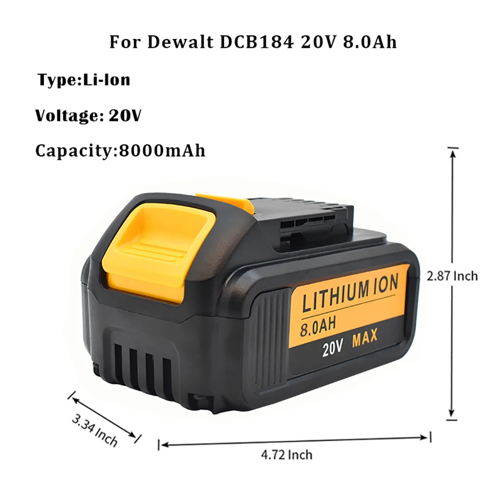 Литиевая батарея KEPAH 20 в 8 Ач 8000 мАч для электроинструментов DeWalt DCB200 DCB205 DCB201 DCB203, перезаряжаемый Электрический инструмент