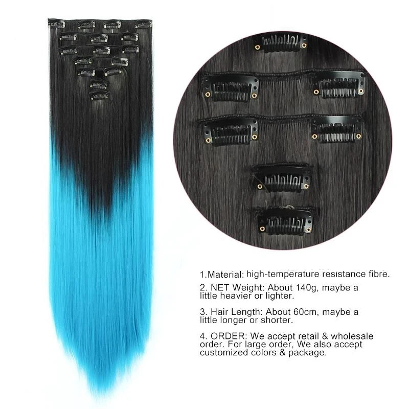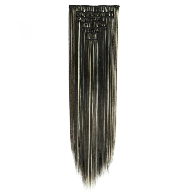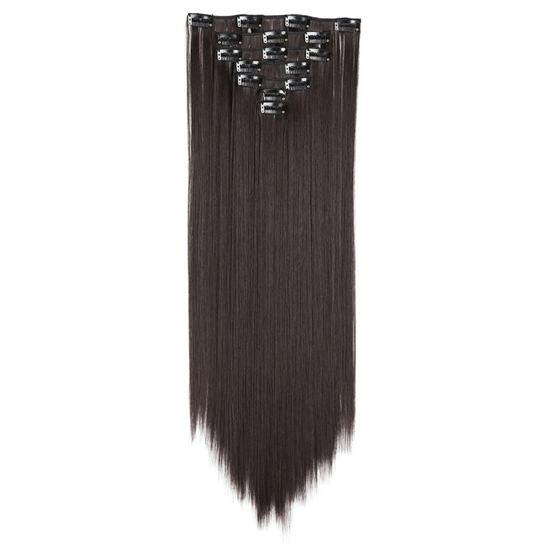 7 шт.компл. 22 дюймов, 16 клипс длинный прямой Синтетические пряди для наращивания волос на клипсах из высокое Температура волокна чёрный; коричневый парик, заколки, заколки для волос