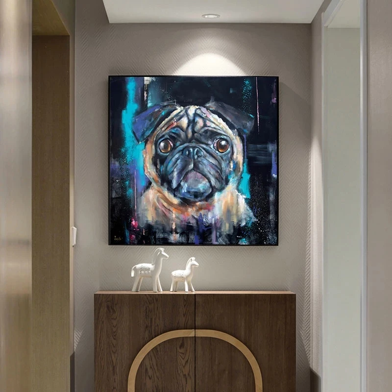 Картина на холсте с изображением мопса, Настенная картина для детск...