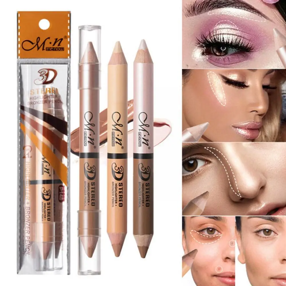3 цвета-двухсторонний 3D хайлайтер, лицо, консилер, контурирующая головка, красивая двойная палка, ручка для теней, перламутровый F8U5