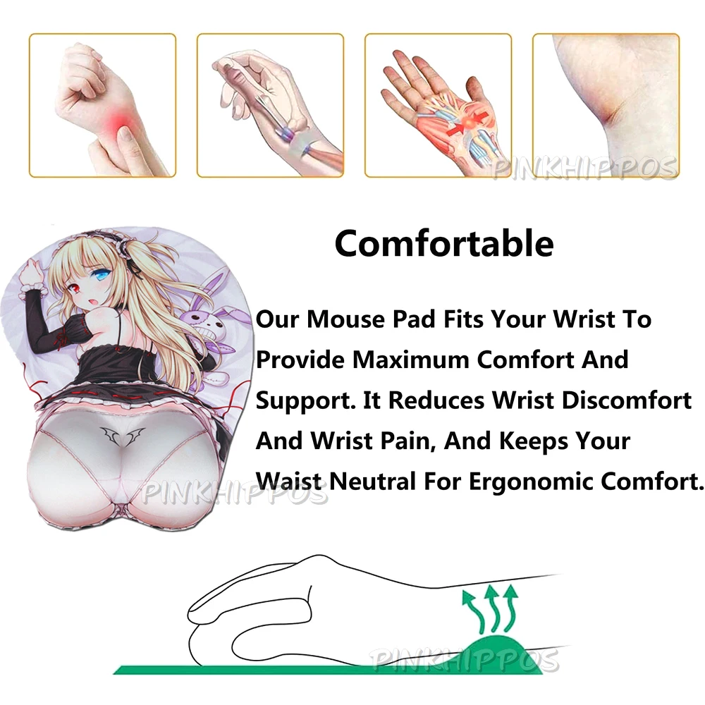 Пользовательский Коврик для мыши pinkhipppos с аниме рисунком, силиконовый эргономичный коврик для мыши с поддержкой запястья, сексуальных ягодиц, мягкий силиконовый гель