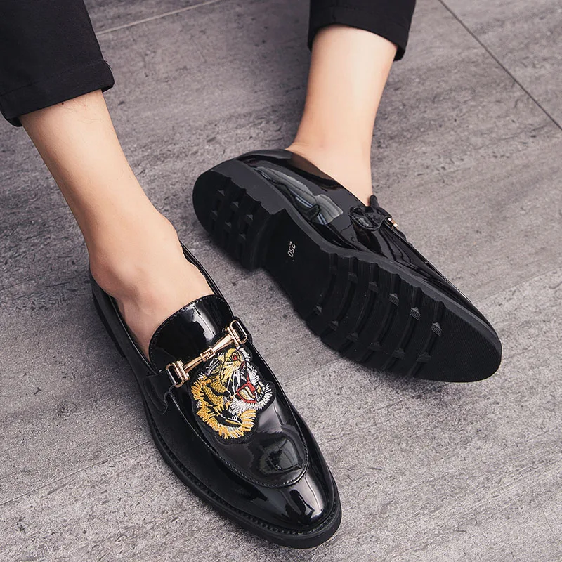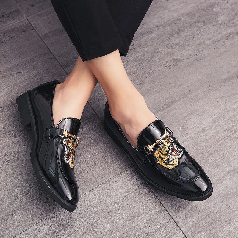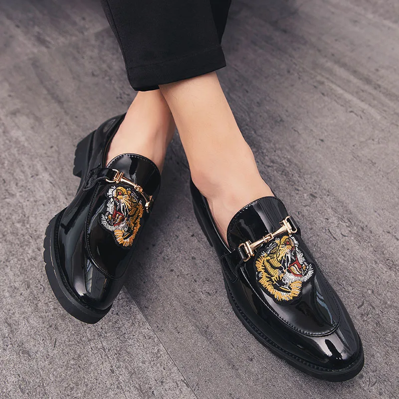 Туфли мужские леопардовые из лакированной кожи, роскошные модные св...