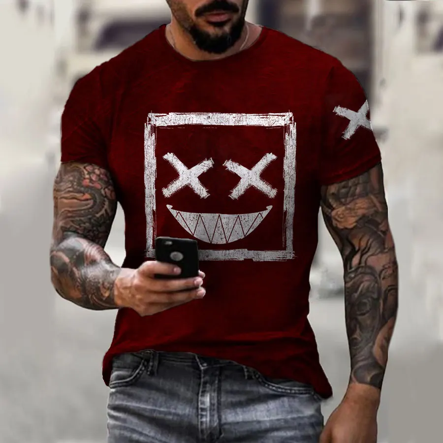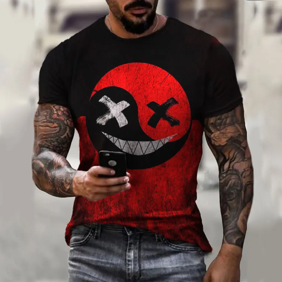 Kimi Летняя мужская модная повседневная футболка с коротким рукавом и круглым вырезом, 3d футболка со смайликом, уличная Мужская футболка оверсайз, Мужская крутая футболка