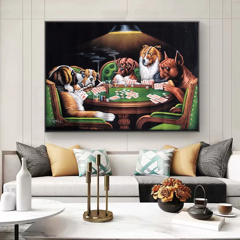 Забавный постер в виде обезьяны, играющей в покер, чтобы выглядеть как будто, собаки, мопса в казино, Картина на холсте для гостиной, домашний декор
