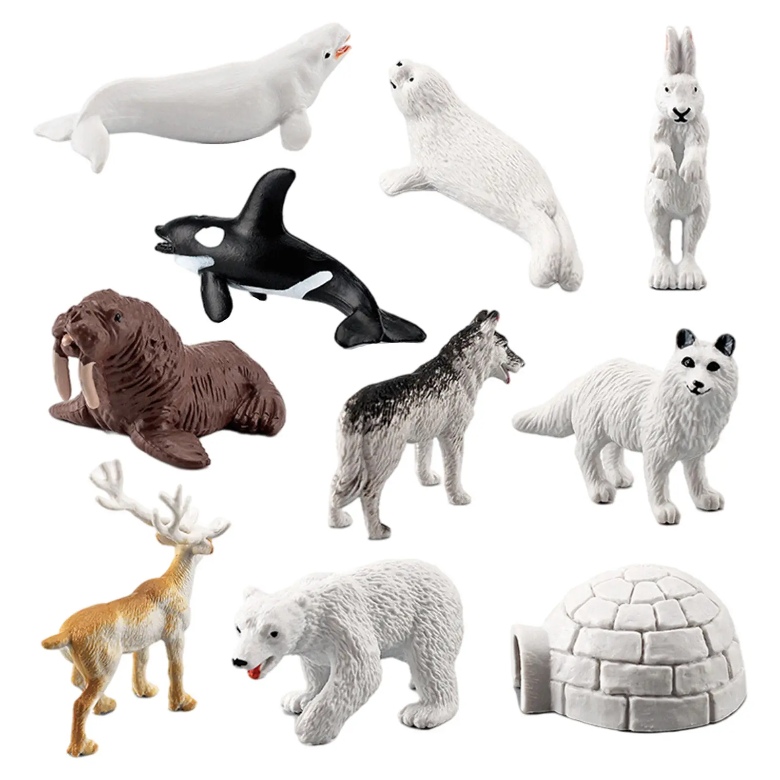 10 реалистичных моделей животных в стиле Арктики, реквизит, Мини фигурки, модели игрушек на новый год, день рождения, рождественскую вечеринку