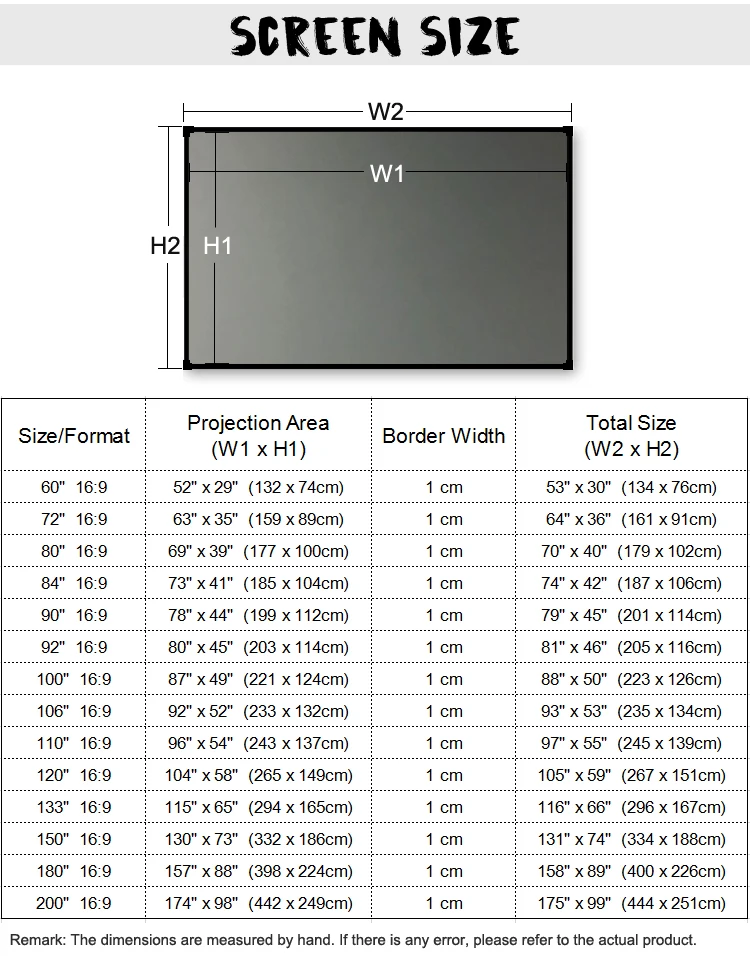 Size80" 90" 100" 120" 133" 150"
