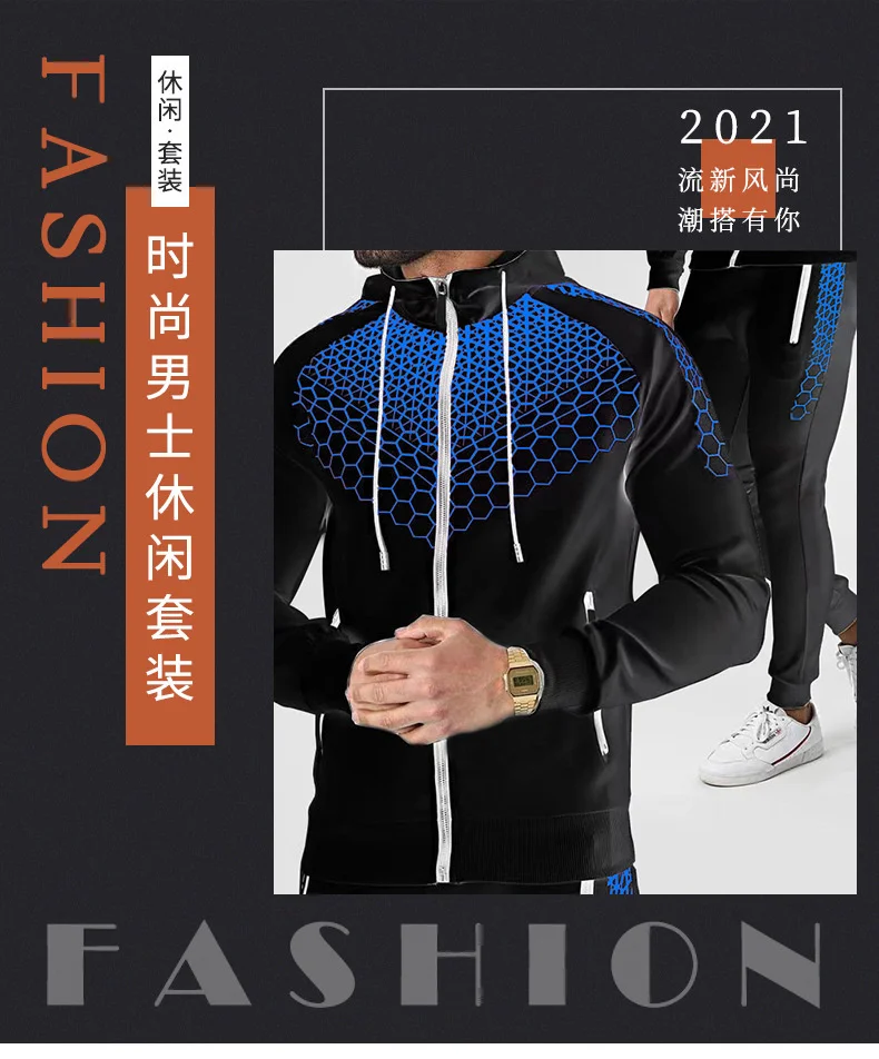 Весна-Осень 2021, спортивная одежда, мужская куртка с капюшоном, повседневный костюм с брюками