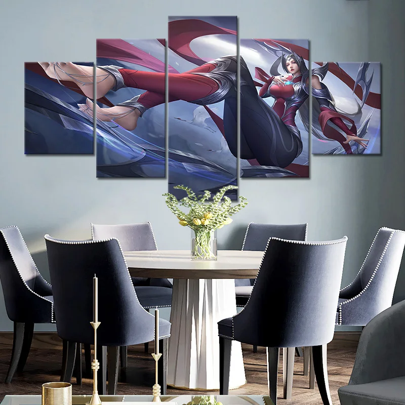 Модульные картины с аниме Akali KDA LOL, 5 панелей, HD принты, плак...