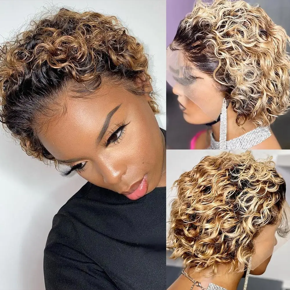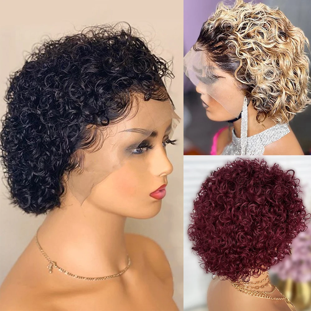 13X1, прозрачный парик на сетке для женщин, парик с вырезом фея, Короткие вьющиеся парики из человеческих волос, дешевый парик из человеческих волос с 5 звездами, человеческие парики под искусственными волосами