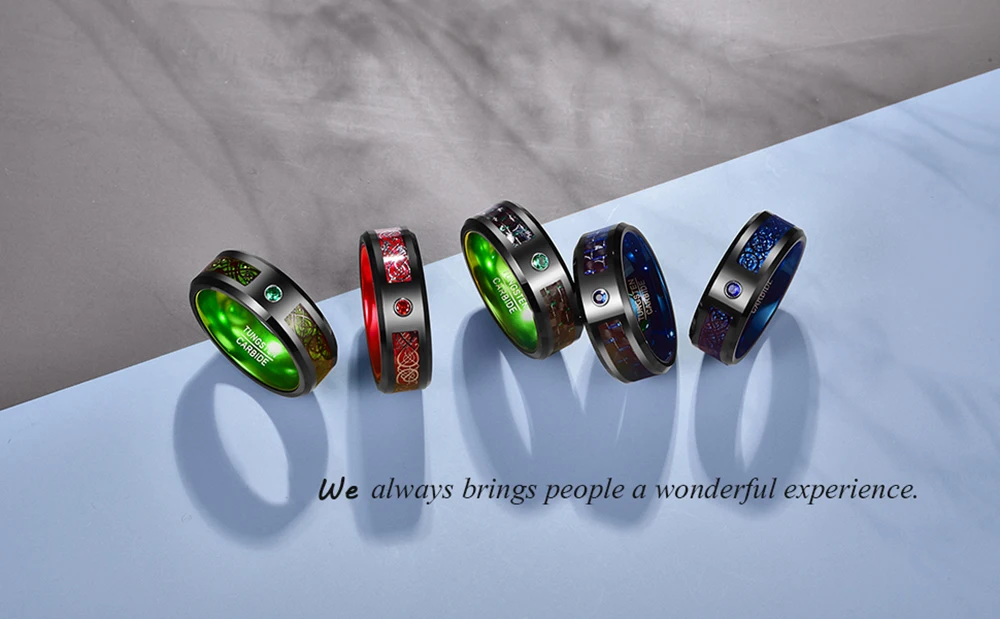 Мужское кольцо с драконом 8 мм, красное кольцо из углеродного волокна со скошенной кромкой из нержавеющей стали и инкрустацией из кельтского циркония, обручальное кольцо для мужчин