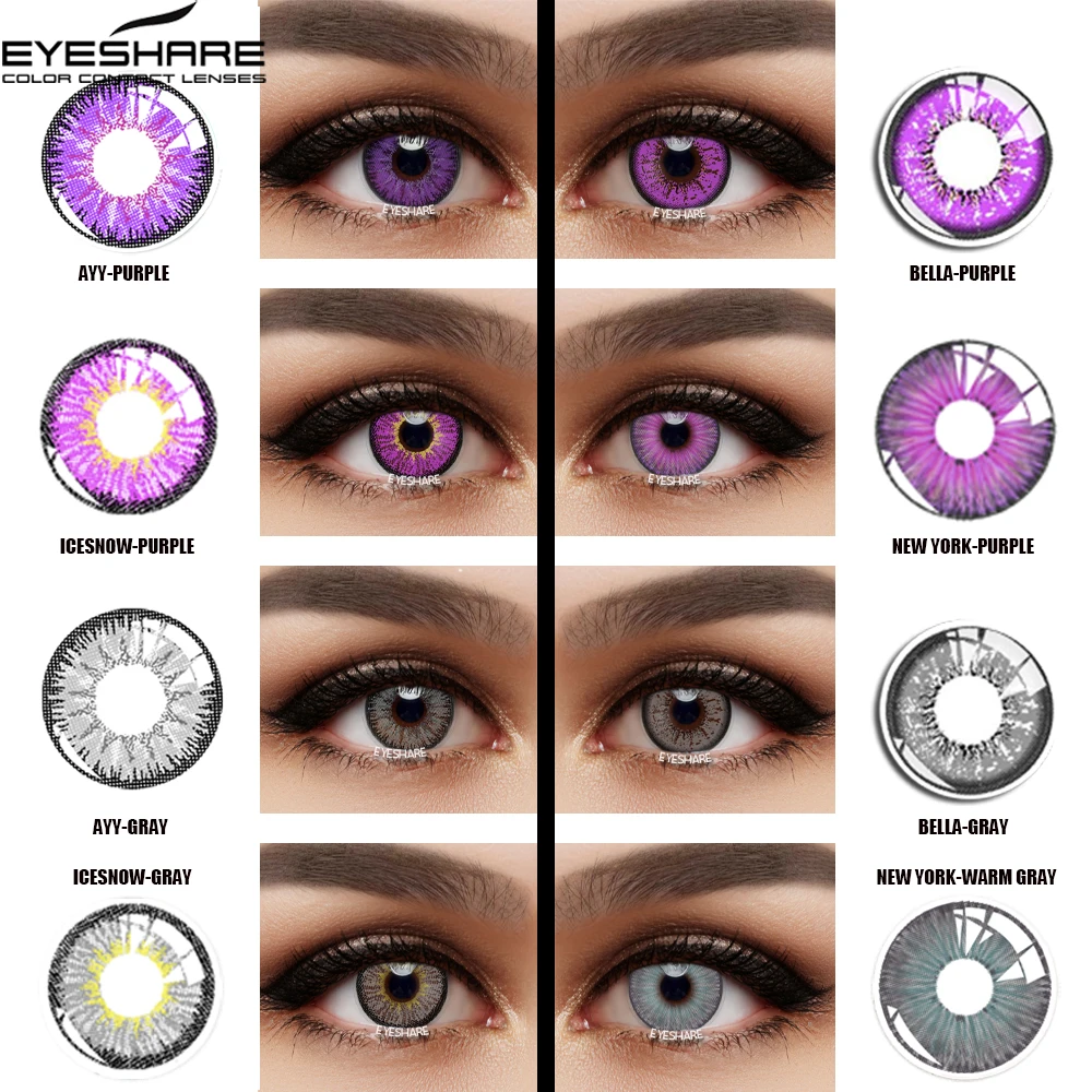 Цветные контактные линзы EYESHARE для косплея на Хэллоуин, цветные контактные линзы для аниме, цветные линзы для глаз, цветные линзы фиолетового и серого цветов
