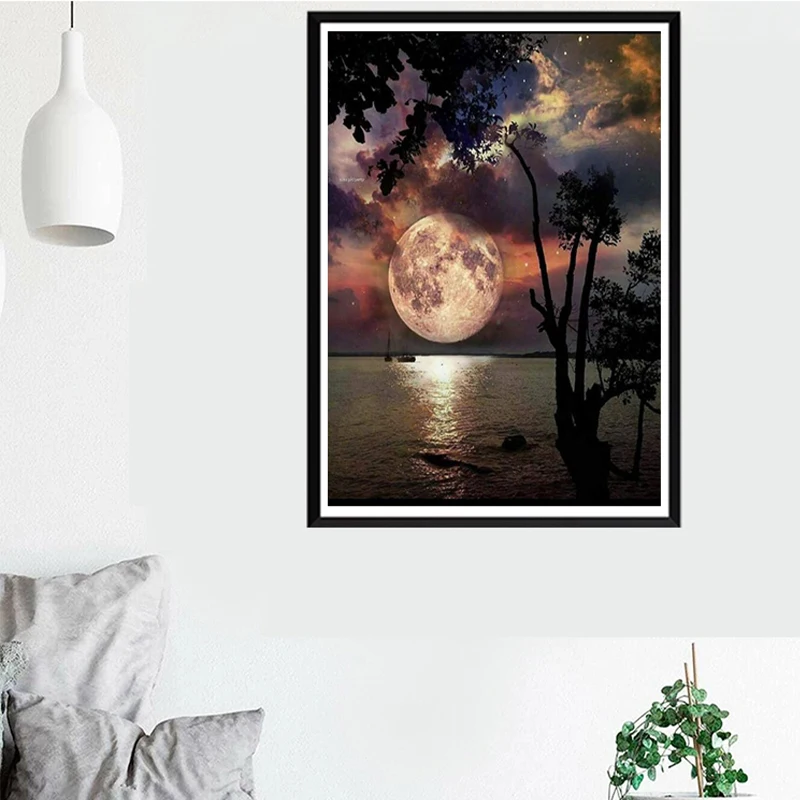 Алмазная живопись 5D, луна, фотосессия, полная луна, пейзаж, алмазн...