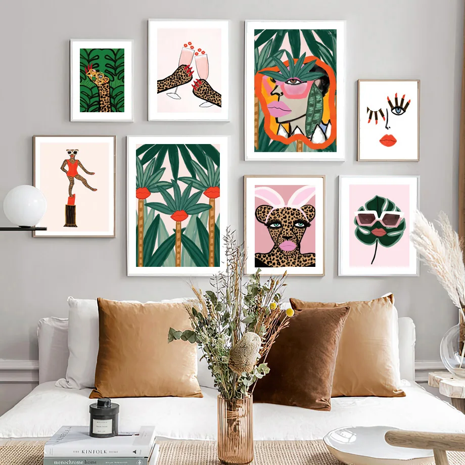 Абстрактная тропическая монстера девушка Гепард Бохо настенная Карт...