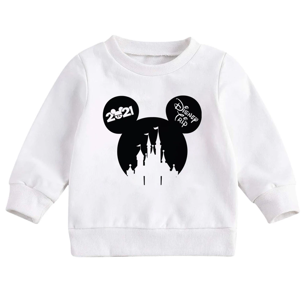 Белые толстовки Disney, модные уличные топы с принтом стежков, детс...