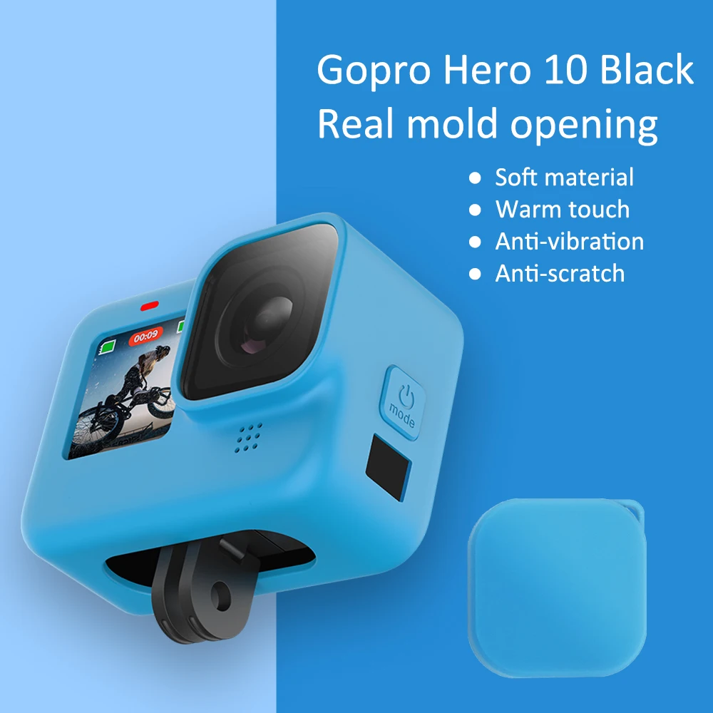 -Вес нетто: 32 г-Цвет: черный и синий-Функция: пыленепроницаемый, ударопрочный, защитный корпус камеры-Материал: силикон-Подходит для GoPro hero 10 Black