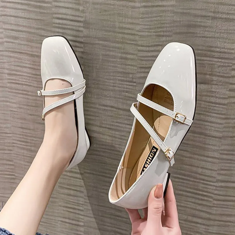 Женские туфли-лодочки из лакированной кожи, с двойной пряжкой и квадратным носком