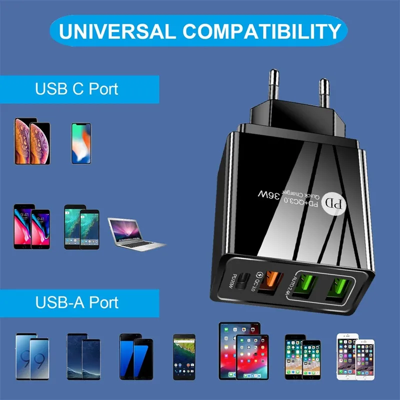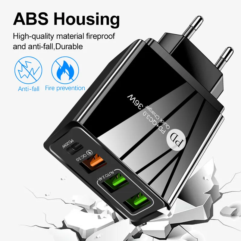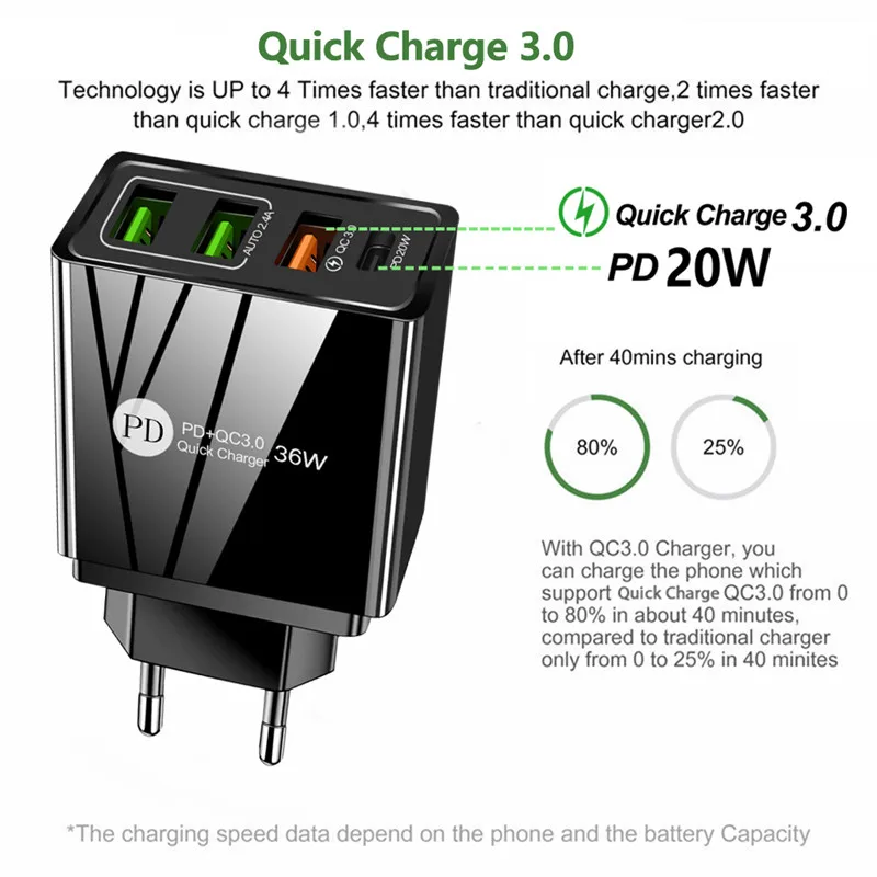 Зарядное устройство USB PD, 36 Вт, быстрая зарядка QC3.0 USB для iP...
