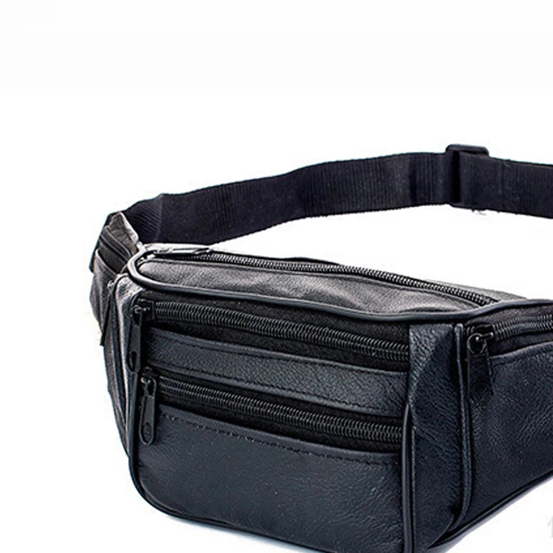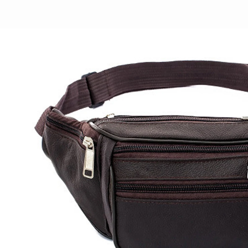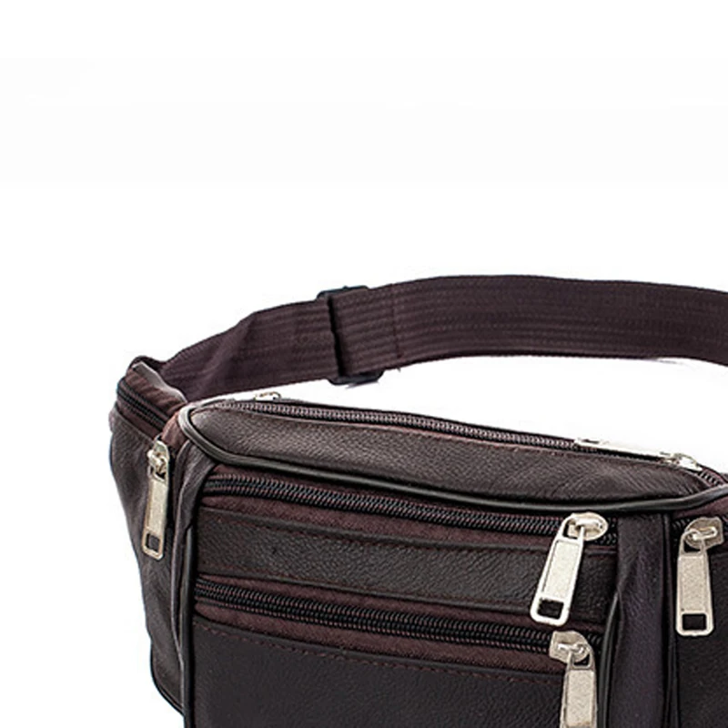 Модная Мужская поясная сумка из натуральной кожи с несколькими карм...