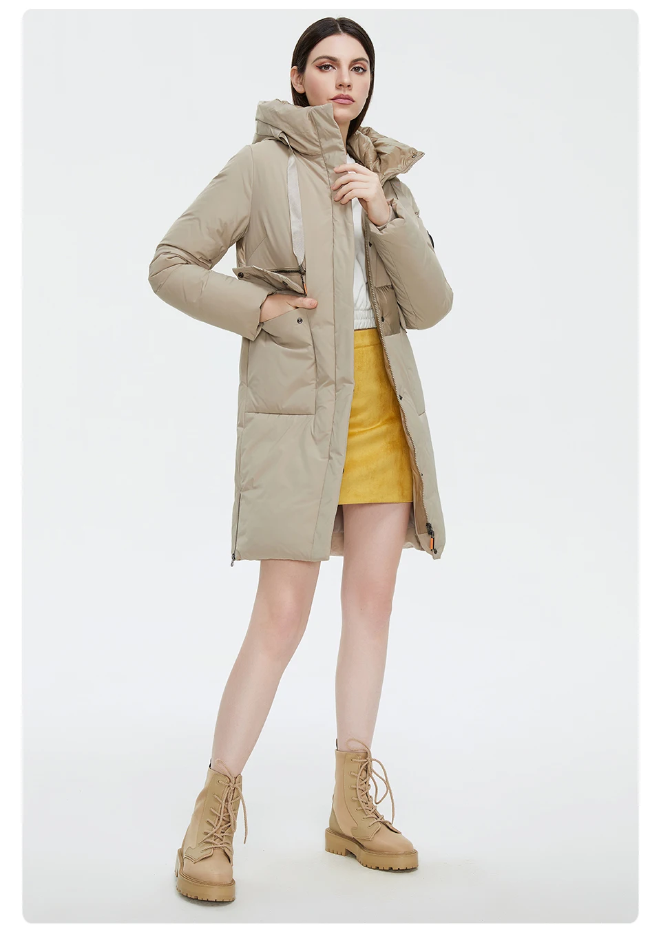 Куртка женская зимняя GASMAN 2021, длинная теплая бежевая пуховая п...
