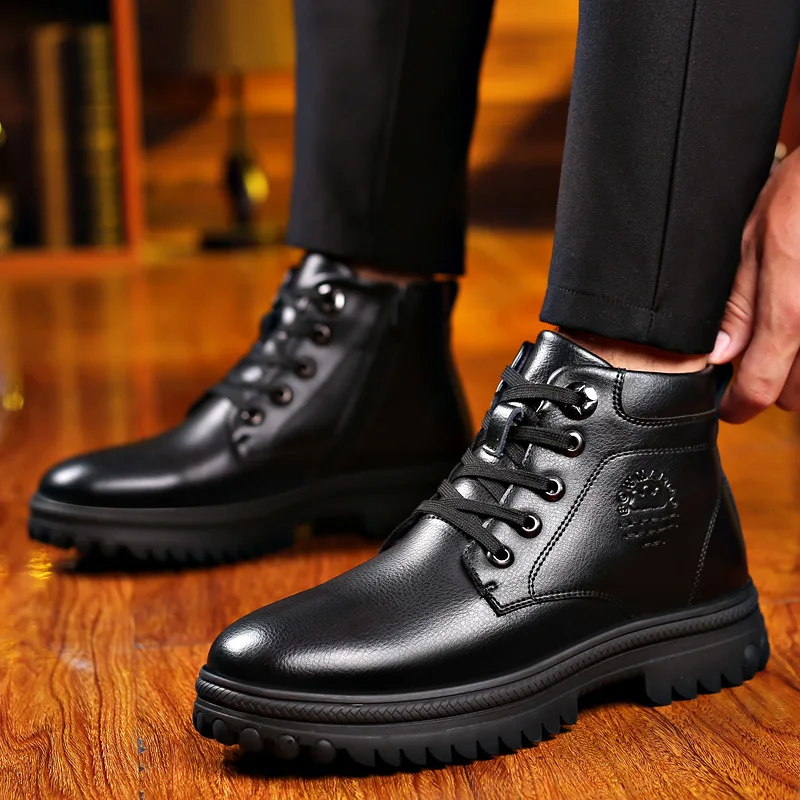 A65 обувь для мужчин плюс флис теплая кожа шерсть высокие хлопковые...