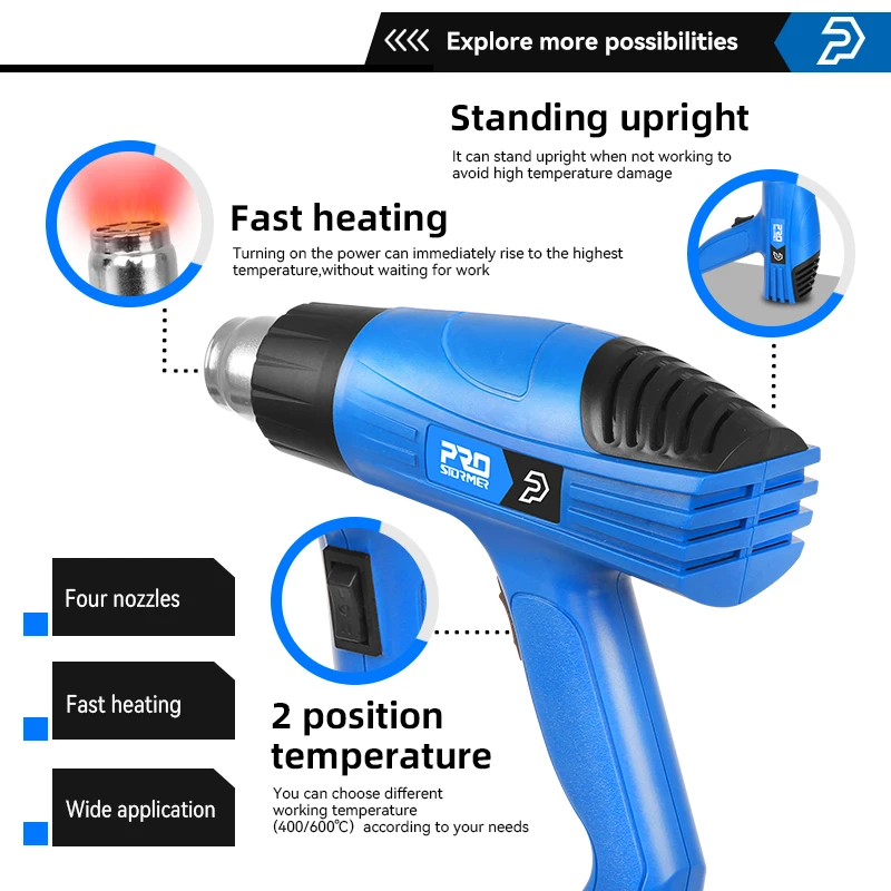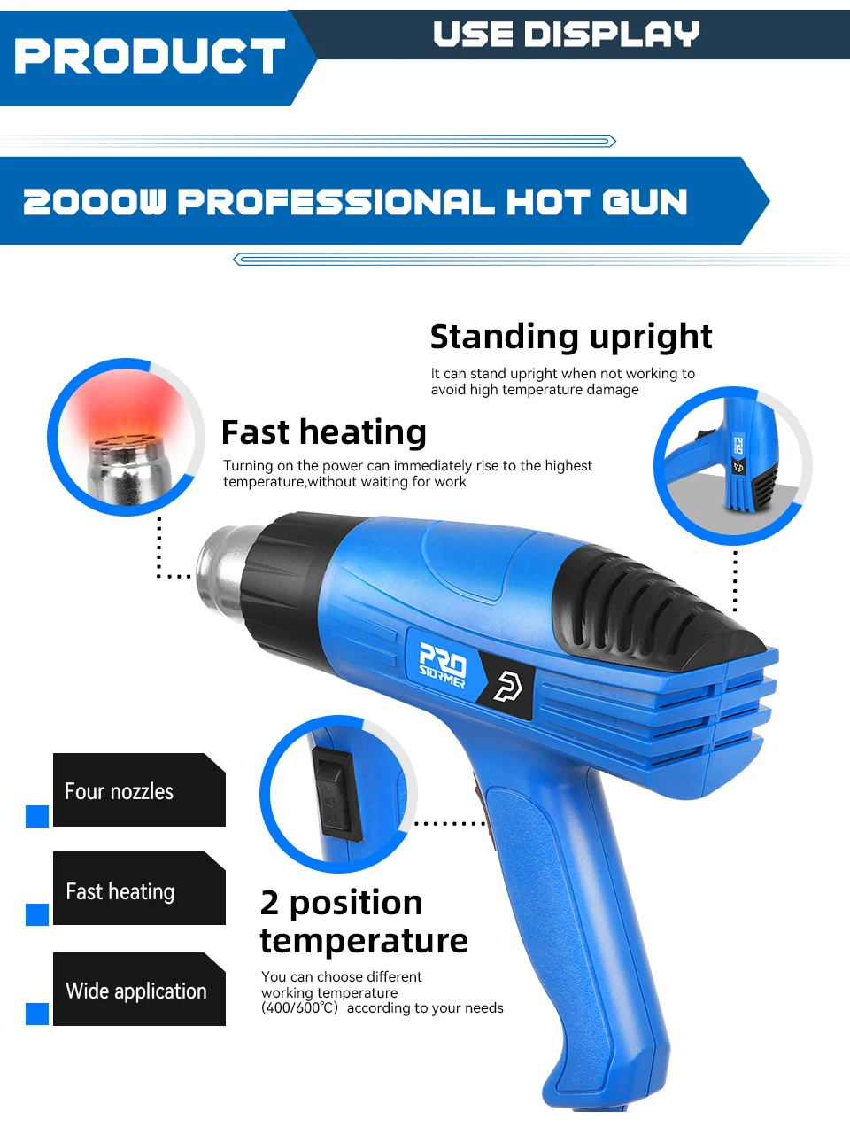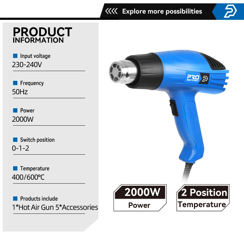 2000 Вт пистолет с горячим воздухом 220 В Температурный Регулируемый Расширенный электрический тепловой пистолет с пятью аксессуарами промышленный Электроинструмент PROSTORMER