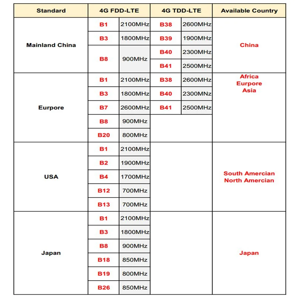 FDD-LTE cat4 (B1/B3/B5/B7/B8/B20);