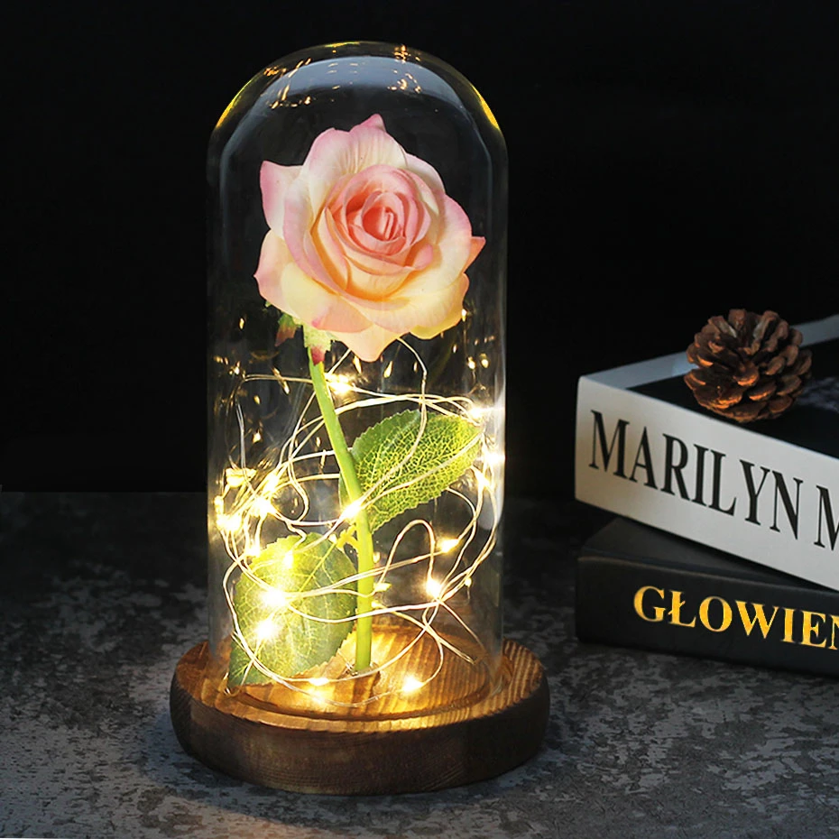 Зачарованная Роза светодиодный ными лампочками в стеклянном куполе, Роза Красавица и чудовище на День святого Валентина, День благодарения, День матери, девочка
