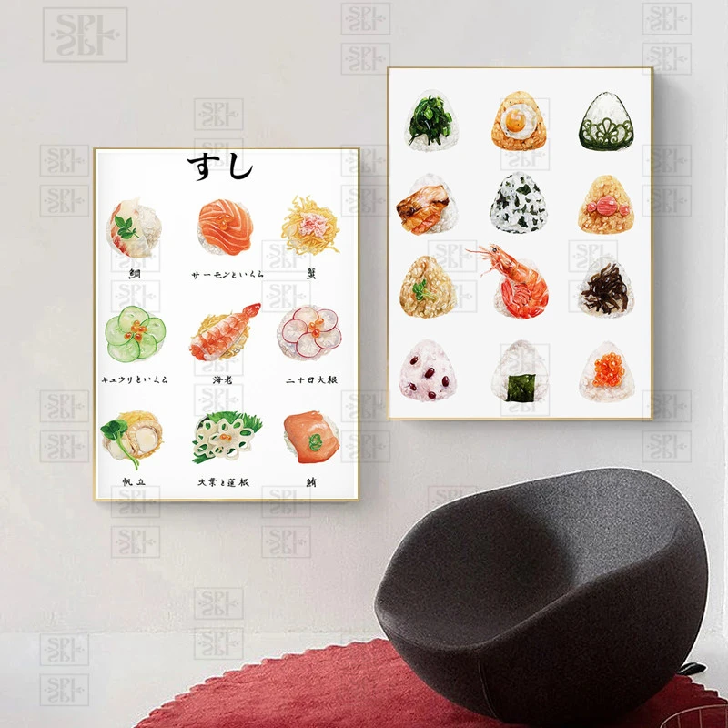 Современный кухонный декор, Китайский Японский постер с едой Пекинской уткой, жареное яйцо, рисовый шар, суши, холст, картина, настенные художественные рисунки