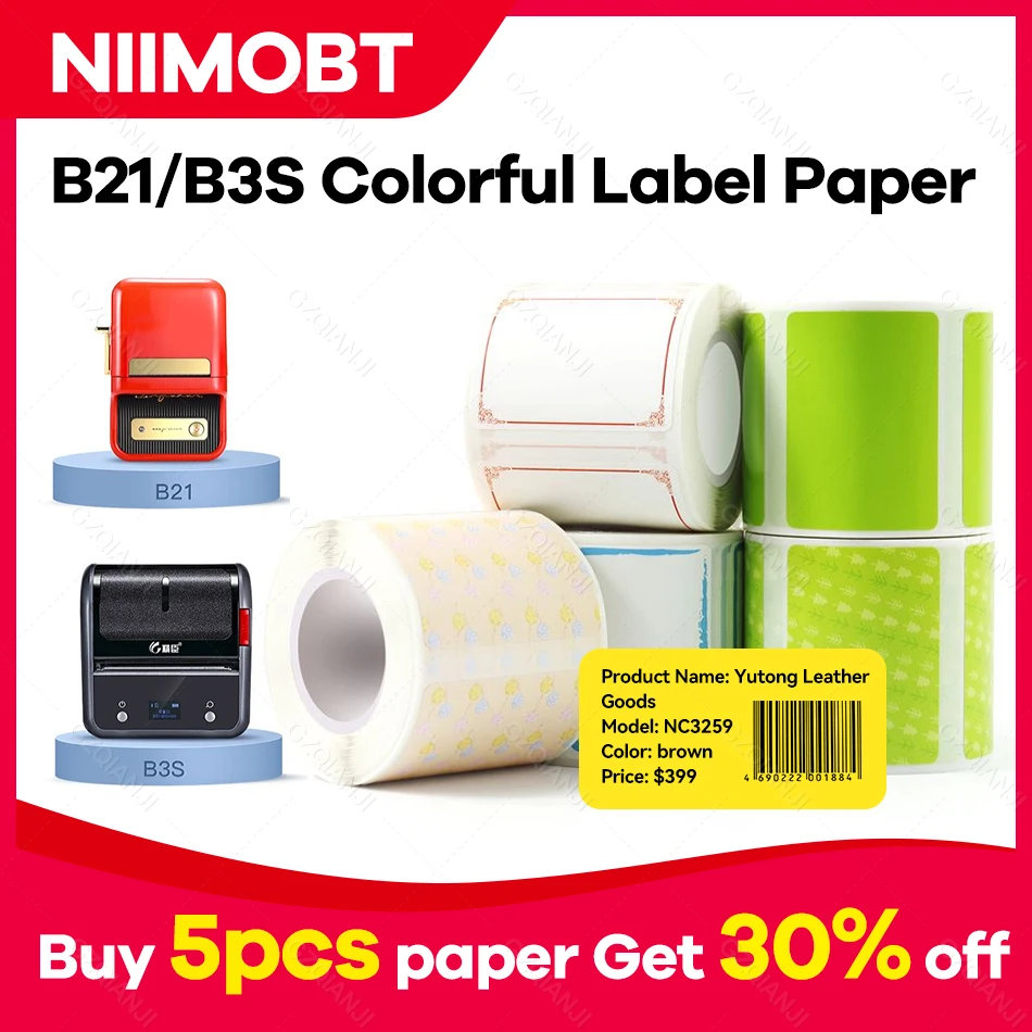 Купите 5 и получите 30% OffNIIMBOT B21 b3s этикеточная машина, печатная бумага, трехслойная Термочувствительная этикеточная бумага, самоклеящийся цвет