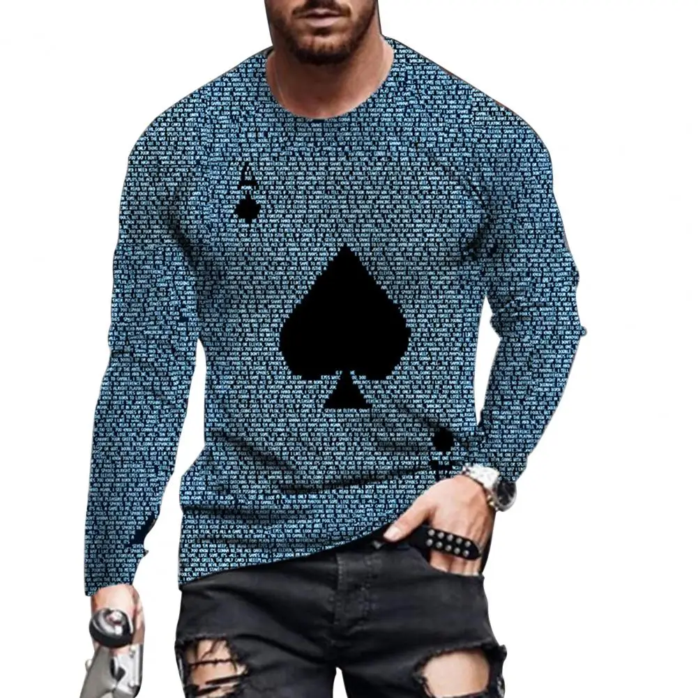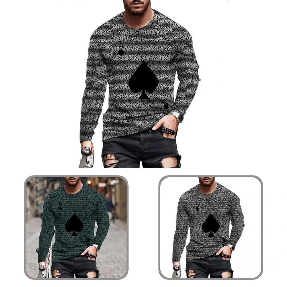 Облегающая уличная одежда, длинная футболка с круглым вырезом и игральными картами, Повседневная футболка для дома