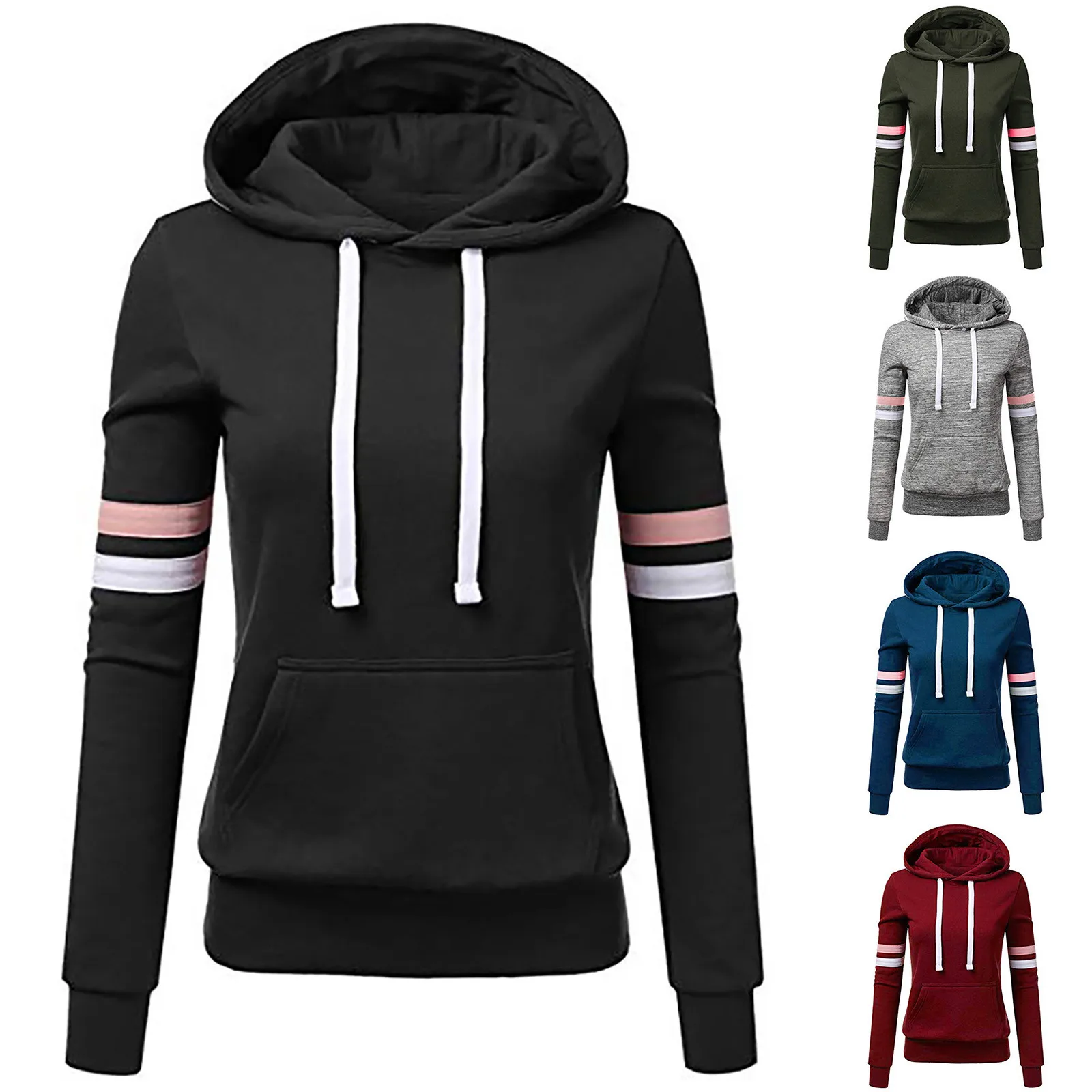 Женская толстовка, полосатая толстовка с капюшоном, длинными рукава...