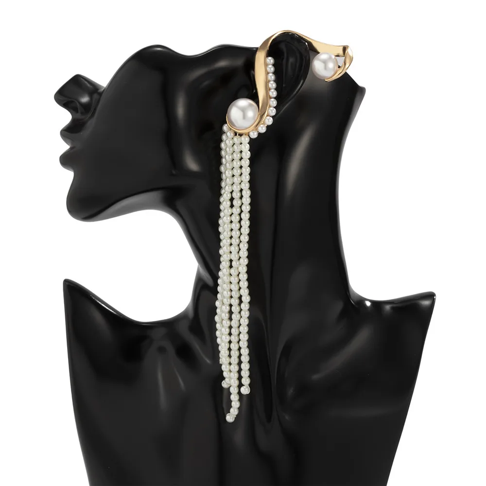 2021 модные длинные серьги-клипсы с кисточками, крючок для женщин, имитация жемчуга, клипсы для ушей без проколов, серьги-цепочки, ювелирные изделия