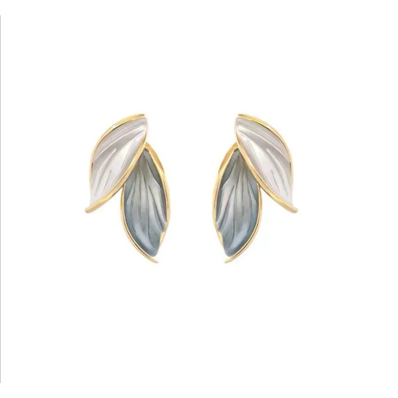 Корейская мода серьги 2021 тенденция личности эмалевый листочек, се...