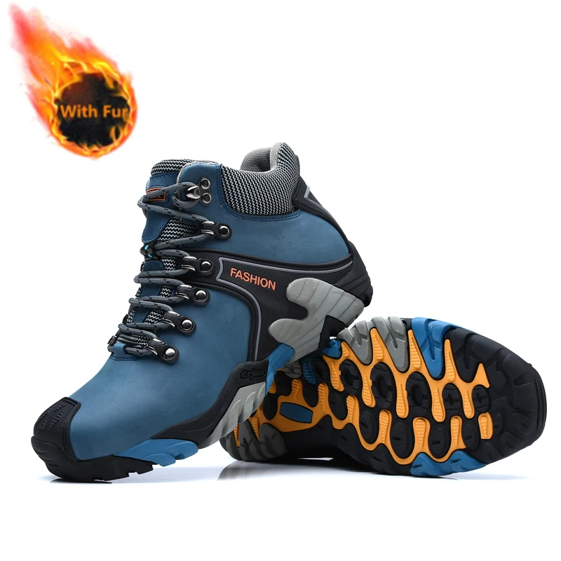 Мужские Нескользящие походные ботинки, рабочая обувь, 2021, водонепроницаемые зимние ботинки для мужчин, высокие модные плюшевые очень теплые зимние прогулочные ботинки