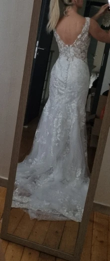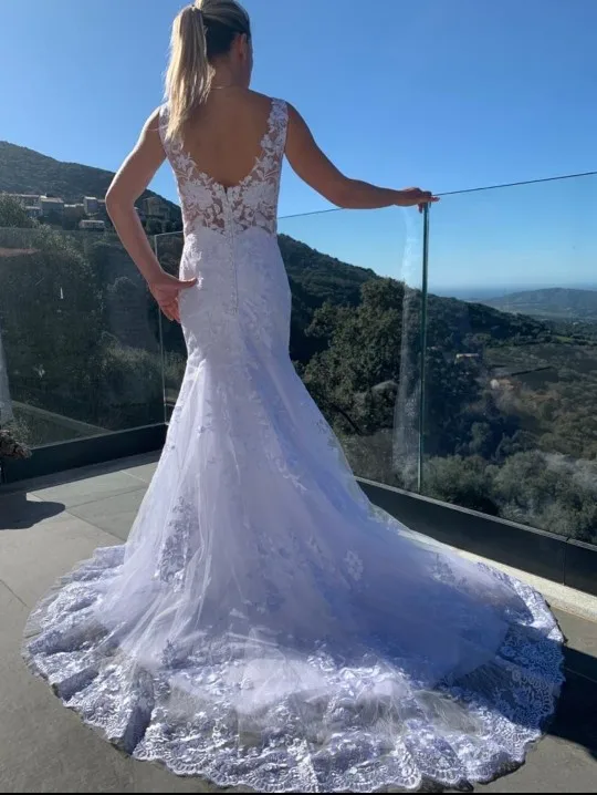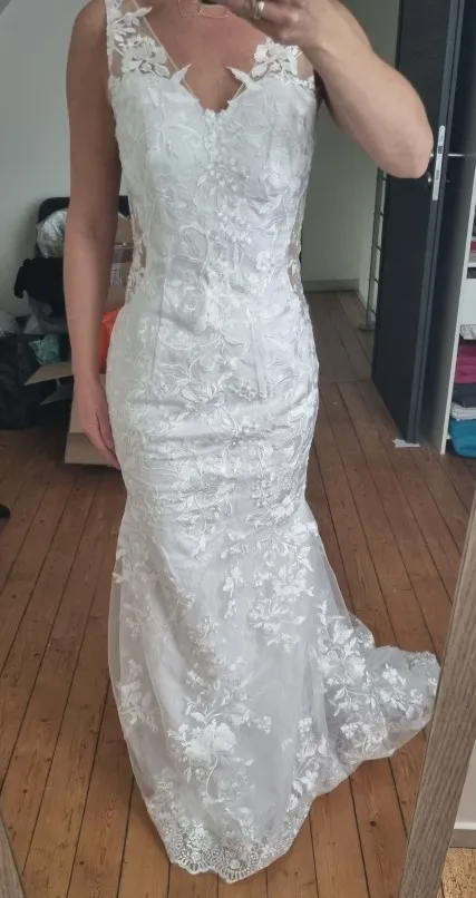После примерки свадебных платьев в магазинах я был разочарован ценами. Я не хотел тратить больше $1000 на платье. Я примерил несколько платьев на Aliexpress и не понравился размер. Это платье с другой стороны подходит как перчатка.