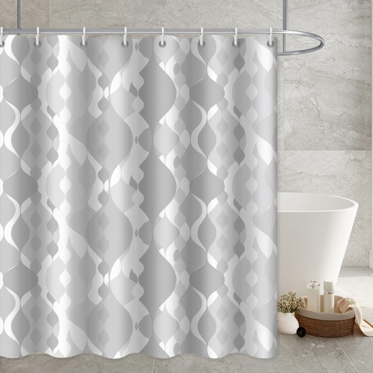 Длинная душевая занавеска в современную полоску серого цвета, аксессуары для ванной комнаты, декоративные водонепроницаемые шторы Duschvorhang с крючками