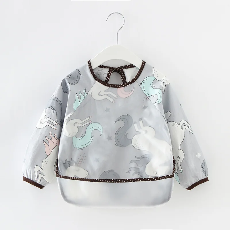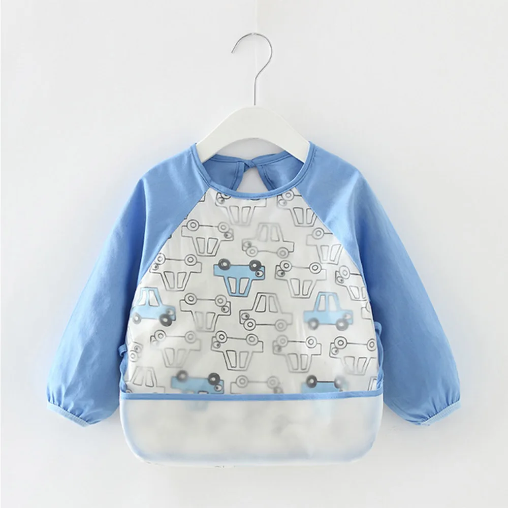 Нагрудники для маленьких девочек и мальчиков, фартук для детей, водостойкая хлопковая одежда для кормления новорожденных с длинными рукавами и регулируемым рисунком