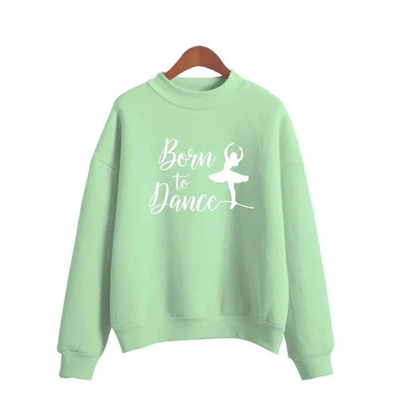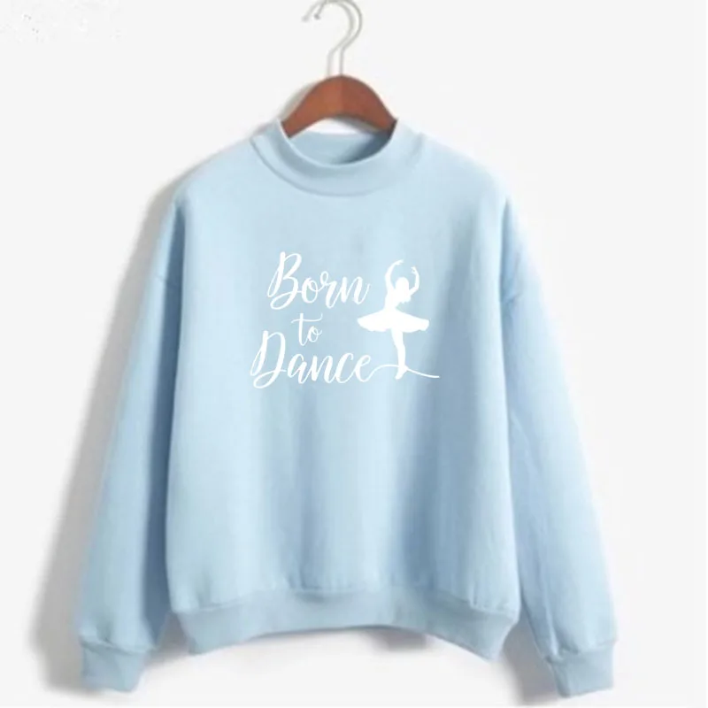Женские свитшоты с принтом Born to dance, милые корейские вязаные пуловеры с круглым вырезом, плотные осенне-зимние свободные толстовки карамельных цветов, 2021