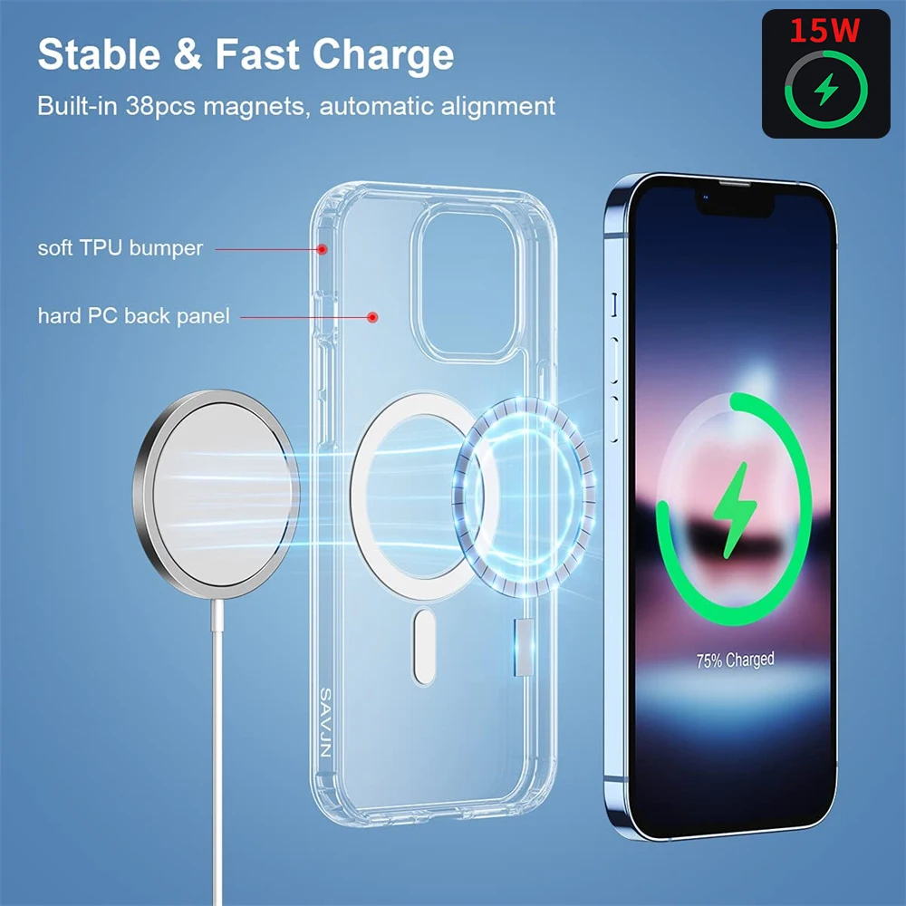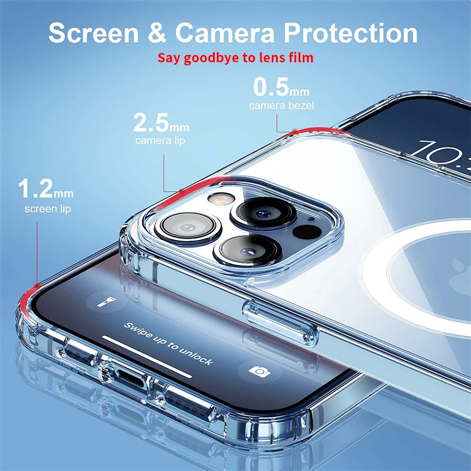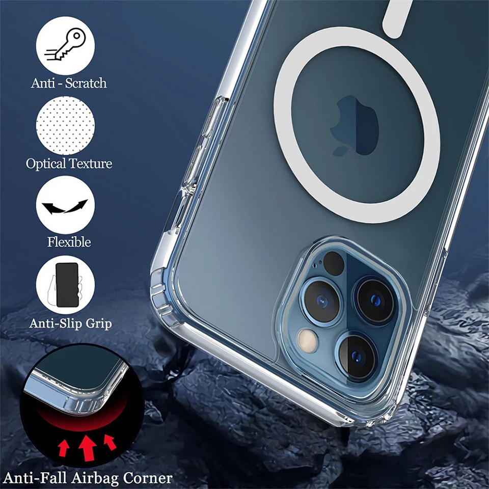 Противоударный прозрачный чехол Mag с безопасной зарядкойДля нового Apple iPhone 13 Pro Max 2021 12 Mini 11 12 Pro