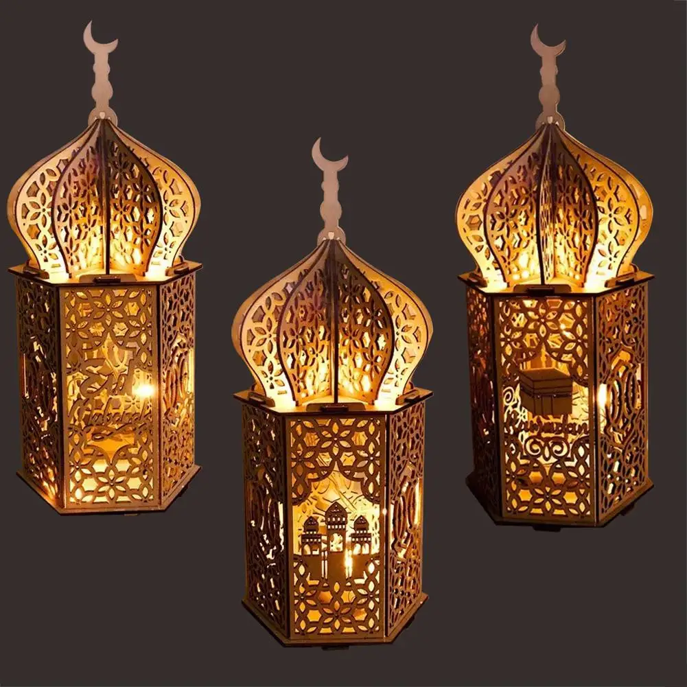 Деревянные Рамадан ИД Мубарак украшение храм Луна светодиодный свеч...