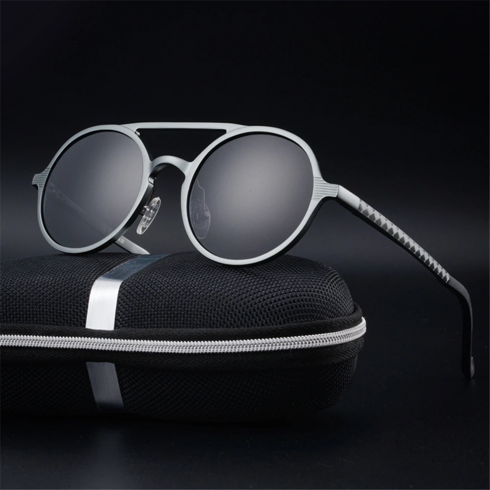 Мужские солнцезащитные очки XaYbZc, поляризационные круглые очки из алюминиево-магниевого сплава, для вождения, в стиле панк, 2022